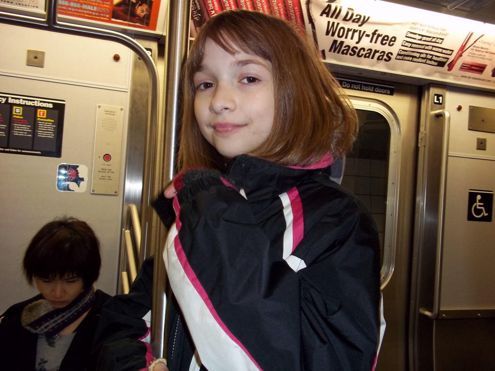 Grace likes to STAND on the subway - - - - we'll, in the morning anyway!